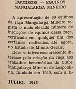 Clube Mangalarga Mineiro de Leopoldina, fundado em 1940